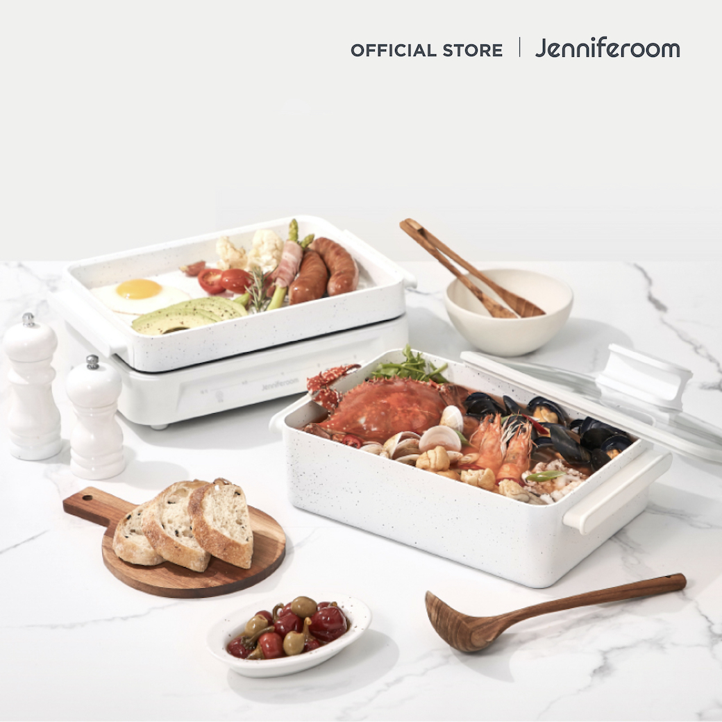 เตาไฟฟ้าอัจฉริยะ Muti Grill 4 รุ่น JRTH-MG1910WH : บ้านไหนบ้านนั้นต้องเคยทำเมนูปิ้งย่าง หรือชาบูกินกันเองที่บ้านอย่างแน่นอน ยิ่งจะเนรมิตครัวเกาหลีทั้งที ไอเท็มนี้ถือว่า ไม่มีไม่ได้! และไม่ต้องกังวลว่า เตาปิ้งย่างจะไม่เข้ากับการแต่ง บ้านสไตล์มินิมอล เพราะ jenniferoom ได้เตรียมเตาไฟฟ้าอัจฉริยะไว้ให้แล้ว ดีไซน์น้อย แต่มากประโยชน์ เข้ากับบ้านสไตล์มินิมอล ได้เป็นอย่างดี เตาไฟฟ้าอัจฉริยะ Multi Grill สีขาวรุ่นนี้ เป็นทั้งเตาไฟฟ้า แล้วก็ยังมีกระทะปิ้งย่าง และหม้อชาบูพร้อมมาให้ในเซ็ตด้วย ความร้อนยังสามารถปรับได้ถึง 4 ระดับ กระจายความร้อนได้อย่างรวดเร็ว สม่ำเสมอ ทั่วถึง มียางกันลื่นใต้ฐานเตา และมีที่เก็บสายไฟในตัว ง่ายต่อการใช้งานและสะดวกในการจัดเก็บ