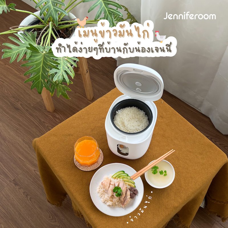 แม้จะมีวิธีทำข้าวมันไก่หม้อหุงข้าวให้ทุกขั้นตอน แต่ความอร่อยที่ได้อาจจะแตกต่างกันเพราะอุปกรณ์และวัตถุดิบนั้นก็เป็นองค์ประกอบที่สำคัญในการปรุงอาหาร นอกเหนือจากหลากเมนูอย่าง โจ๊ก ข้าวอบหม้อดิน ไปจนถึงหลากเมนูเบเกอรี่หม้อหุงข้าวที่คุณสามารถทำได้ในหม้อหุงข้าวเล็กอันนี้ ในกรณีของเมนูข้าวมันไก่ สิ่งสำคัญที่จะตัดสินความอร่อยจะเป็นอื่นใดไปไม่ได้นอกจากเนื้อไก่ที่นุ่มละมุนลิ้นกับข้าวมันหอม ๆ ซึ่งจะได้มาด้วยการควบคุมอุณหภูมิที่แม่นยำและการกระจายความร้อนที่เหมาะสม ดังนั้นหม้อหุงข้าวรุ่นอื่น ๆ อาจไม่สามารถทำได้เพอร์เฟคเหมือนหม้อหุงข้าวเล็ก Macaron Rice Cooker Plus 1.2 L จาก Jenniferoom เพราะสามารถควบคุมอุณหภูมิตลอดการหุงที่ 75 องศาเซลเซียสกระจายทั่วถึงทั้งหม้อด้วยแผ่นทำความร้อนทรงกลมประสิทธิภาพสูง ซึ่งเป็นอุณหภูมิที่สมบูรณ์แบบที่สุดในการต้มไก่ให้สุกพอดีและหุงข้าวได้นุ่มสุกกำลังดีไปพร้อมกันโดยไม่ต้องยกไก่มาน็อคน้ำแข็งเพื่อคุมอุณหภูมิแบบเดิม ๆ ให้ยุ่งยาก