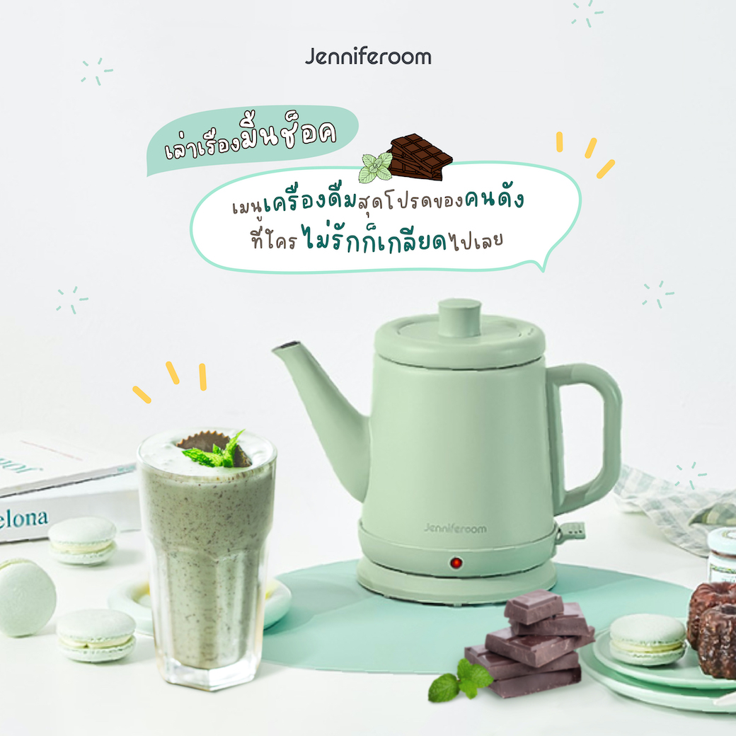 เมื่อเพื่อน ๆ ได้รับรู้ถึงเรื่องราวของมิ้นช็อคแล้วก็คงอยากลองหามิ้นช็อคเย็น ๆ มาดื่มวัดใจสักแก้ว ใครที่ยังไม่เคยลองจะได้รู้กันไปว่าอยู่ในกลุ่ม มินโชดัน เหมือนไอดอลที่ชอบหรือเปล่า หรือจะไปจอยู่กับกลุ่มที่คิดว่า กินเข้าไปได้ยังไงเนี่ย? สำหรับคนที่อยากกินแต่ไม่อยากไปซื้อ น้องเจนนี่ก็มีสูตรการทำมิ้นช็อคดี ๆ ที่ทำง่าย ใช้วัตถุดิบไม่มาก และใช้อุปกรณ์เพียงแค่กาต้มน้ำไฟฟ้าอย่าง Mini Macaron Kettle แค่ชิ้นเดียวก็ทำช็อกโกแลตได้มาฝากกัน มาดูกันเลยดีกว่า